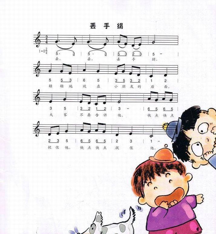 >> 丢手绢-少儿歌曲(简谱+线谱)