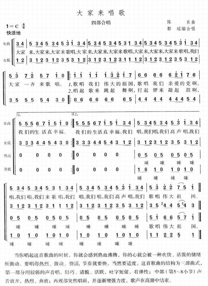 >> 大家来唱歌-四部合唱(合唱简谱)