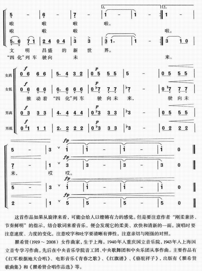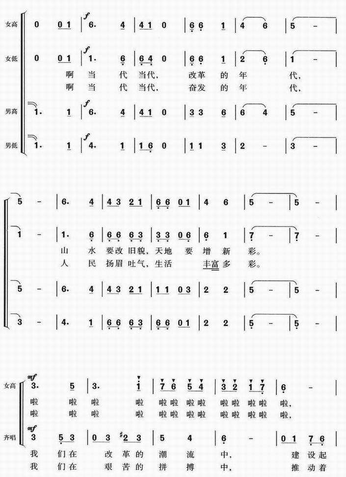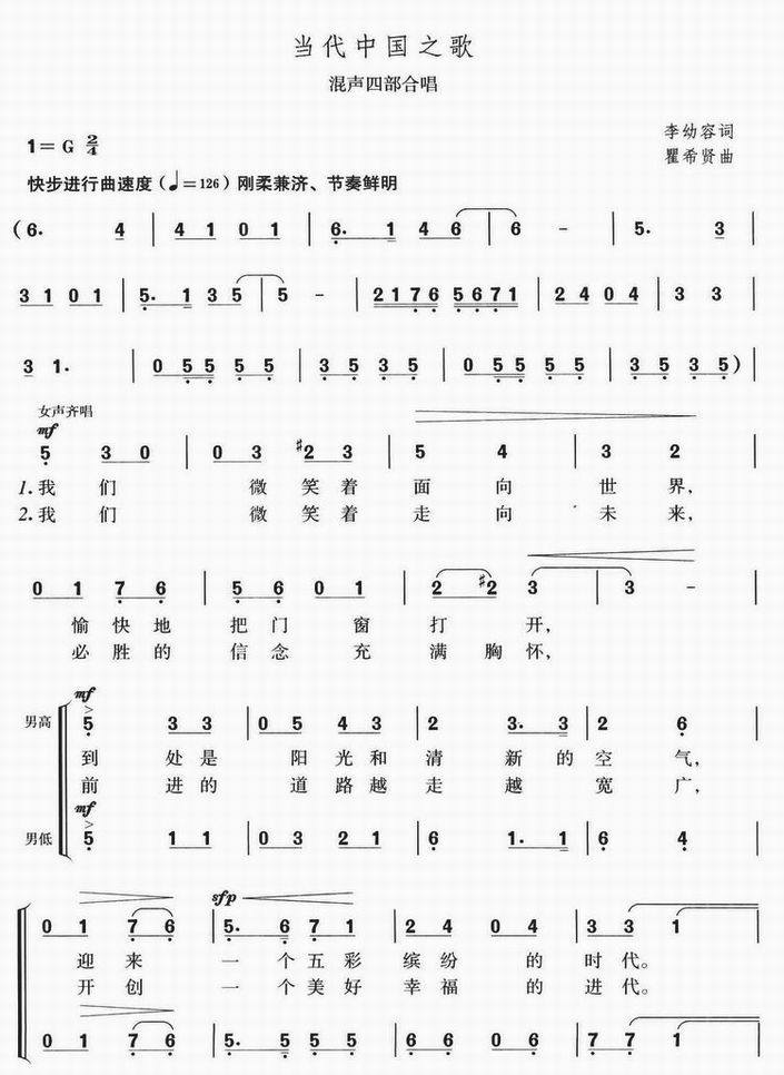 当代中国之歌-混声四部合唱(合唱简谱)