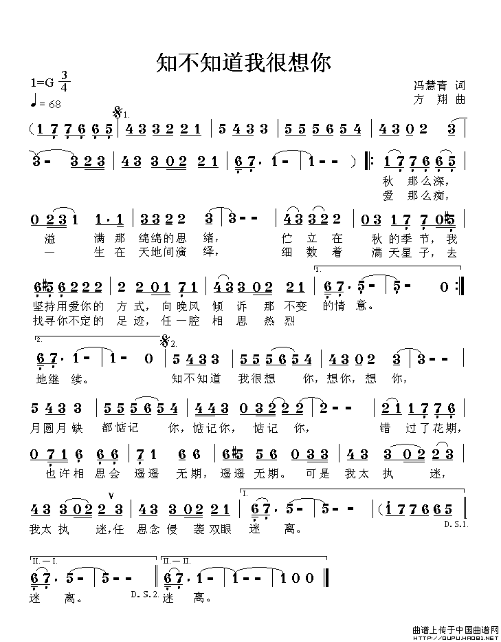 >> 知不知道我很想你-原创歌曲(简谱)