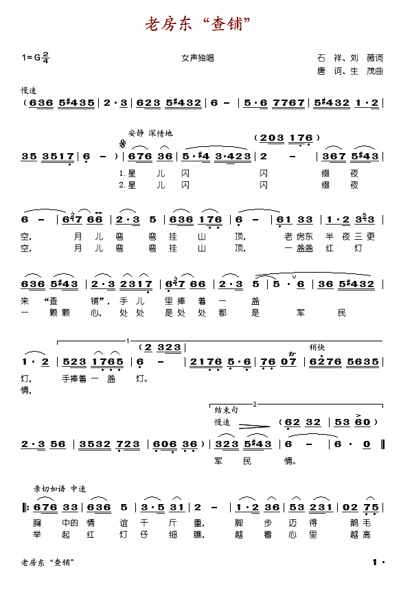 解放军同志请你停一停-任桂珍 马玉涛(简谱)