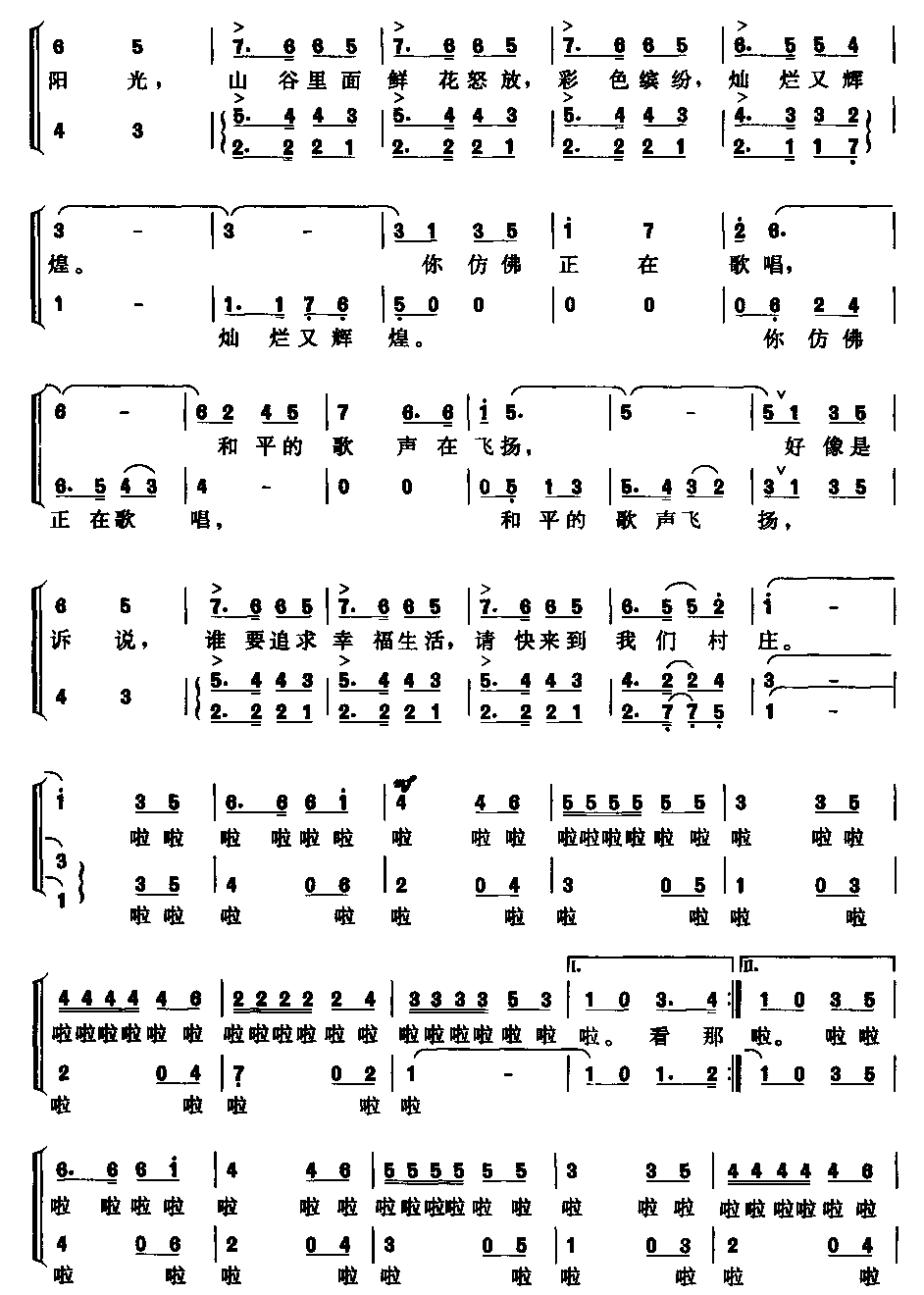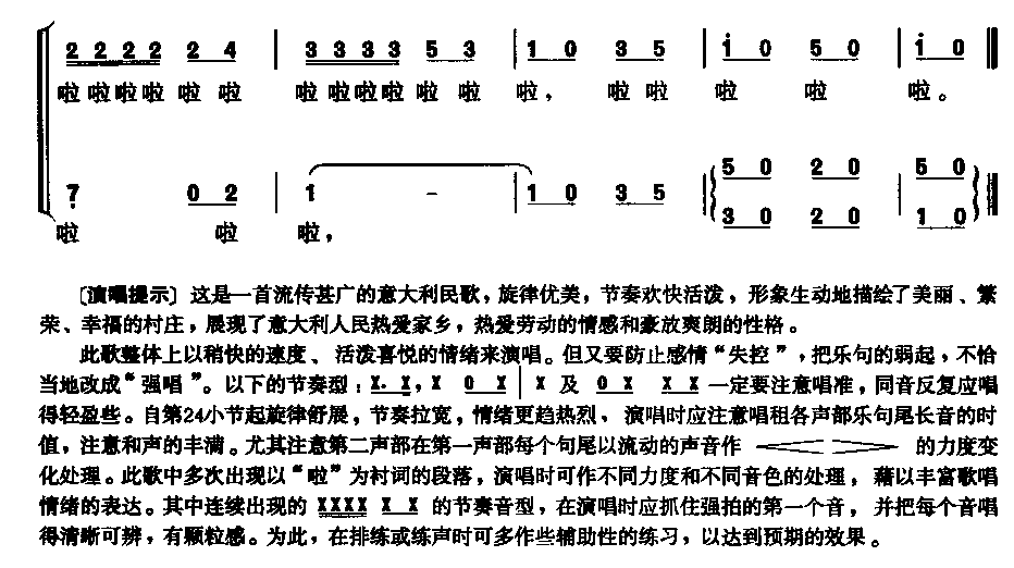 >> 美丽的村庄-意大利民歌(二声部合唱简谱)