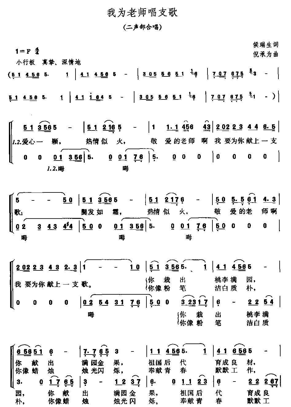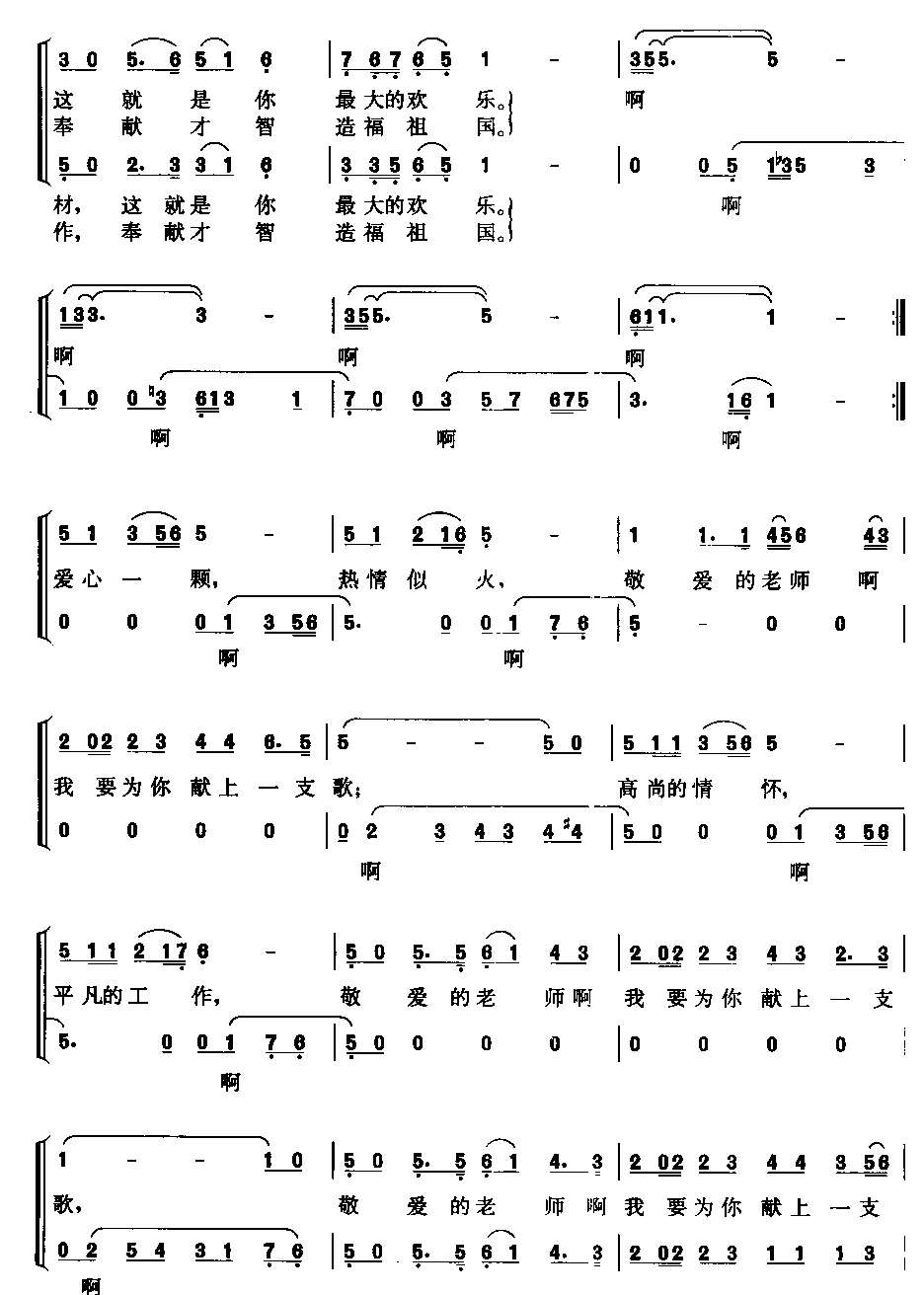 我为老师唱支歌-二声部合唱(合唱简谱)