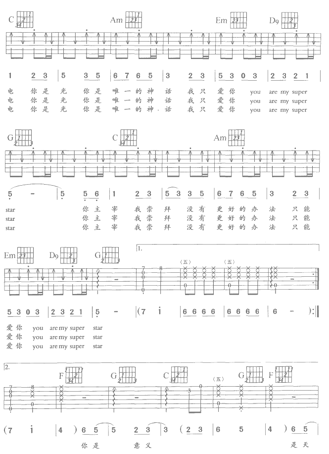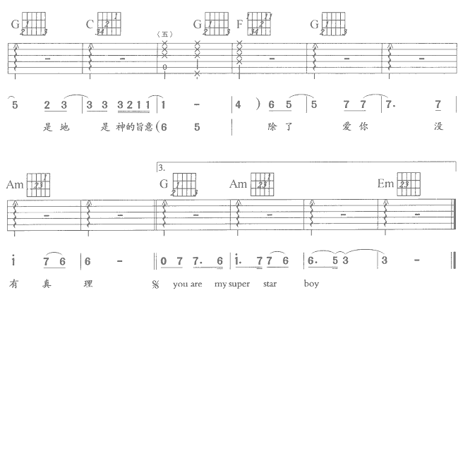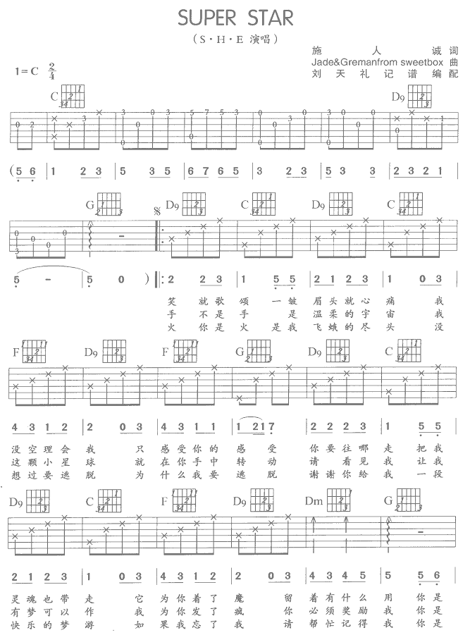 SUPER STAR-S.H.E(吉他谱_六线谱)