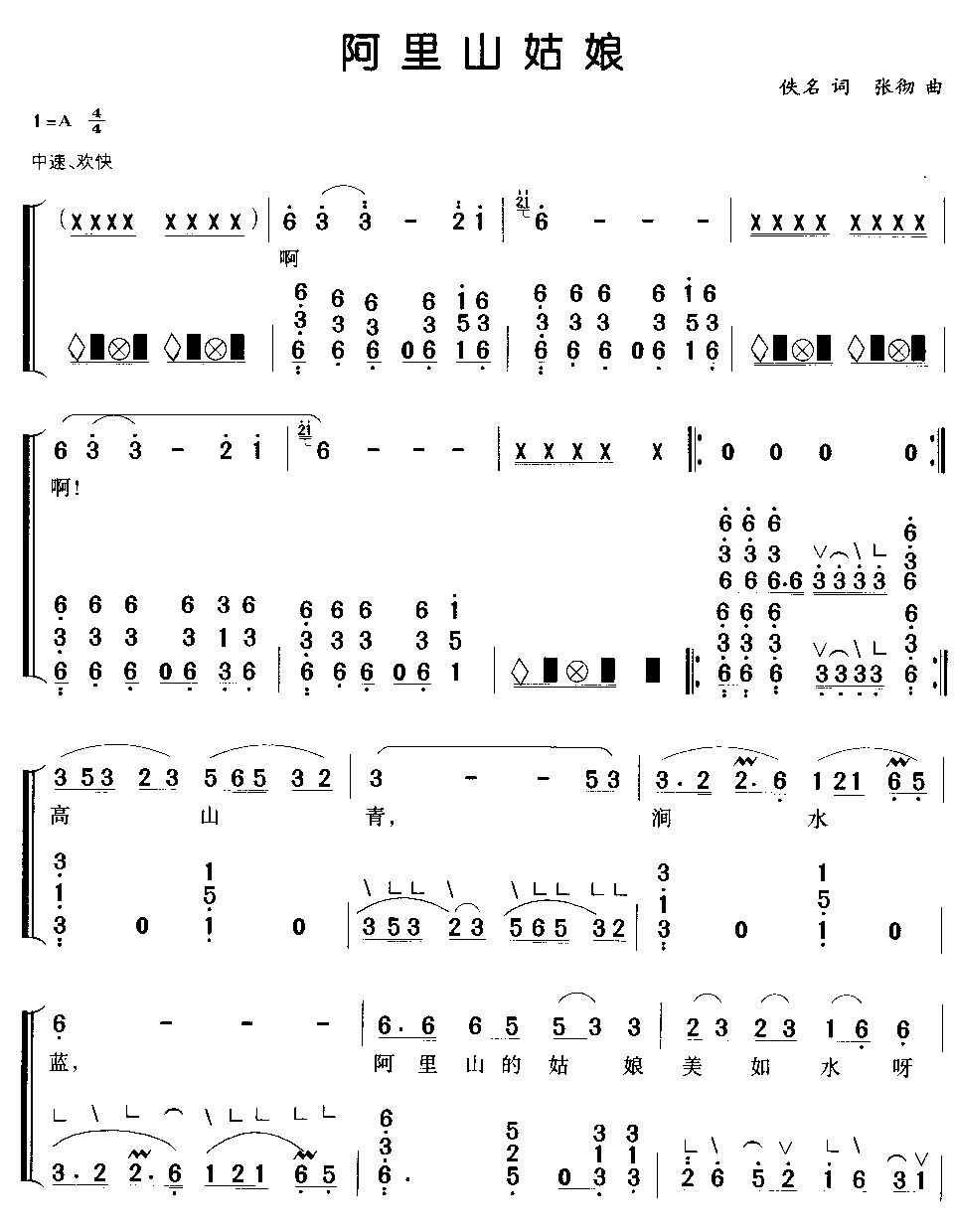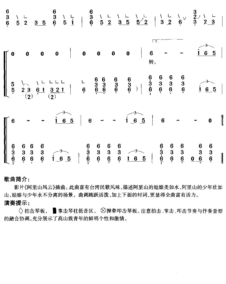 >> 阿里山的姑娘-台湾民歌(古筝伴奏谱_简谱)