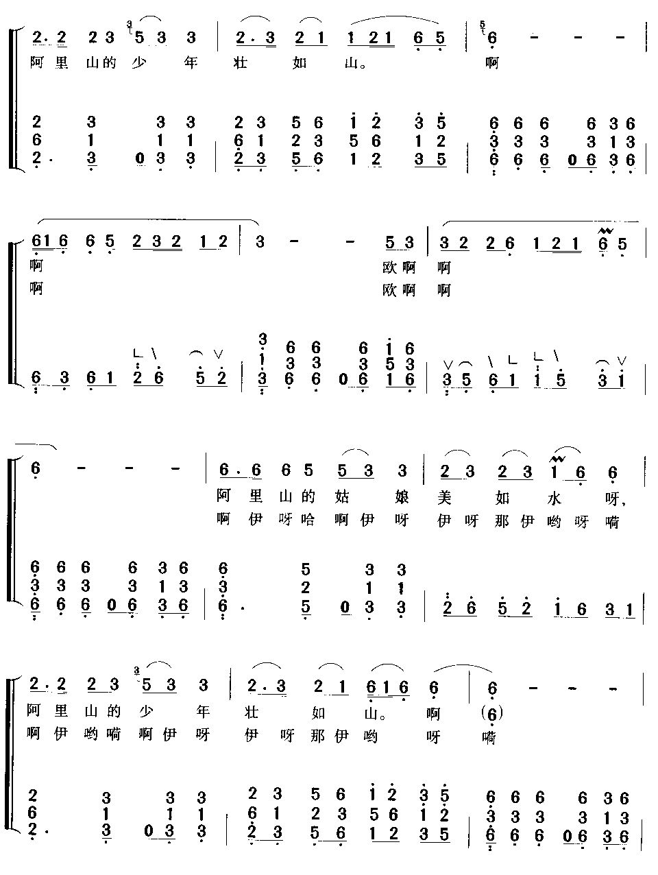 阿里山的姑娘-台湾民歌(古筝伴奏谱_简谱)