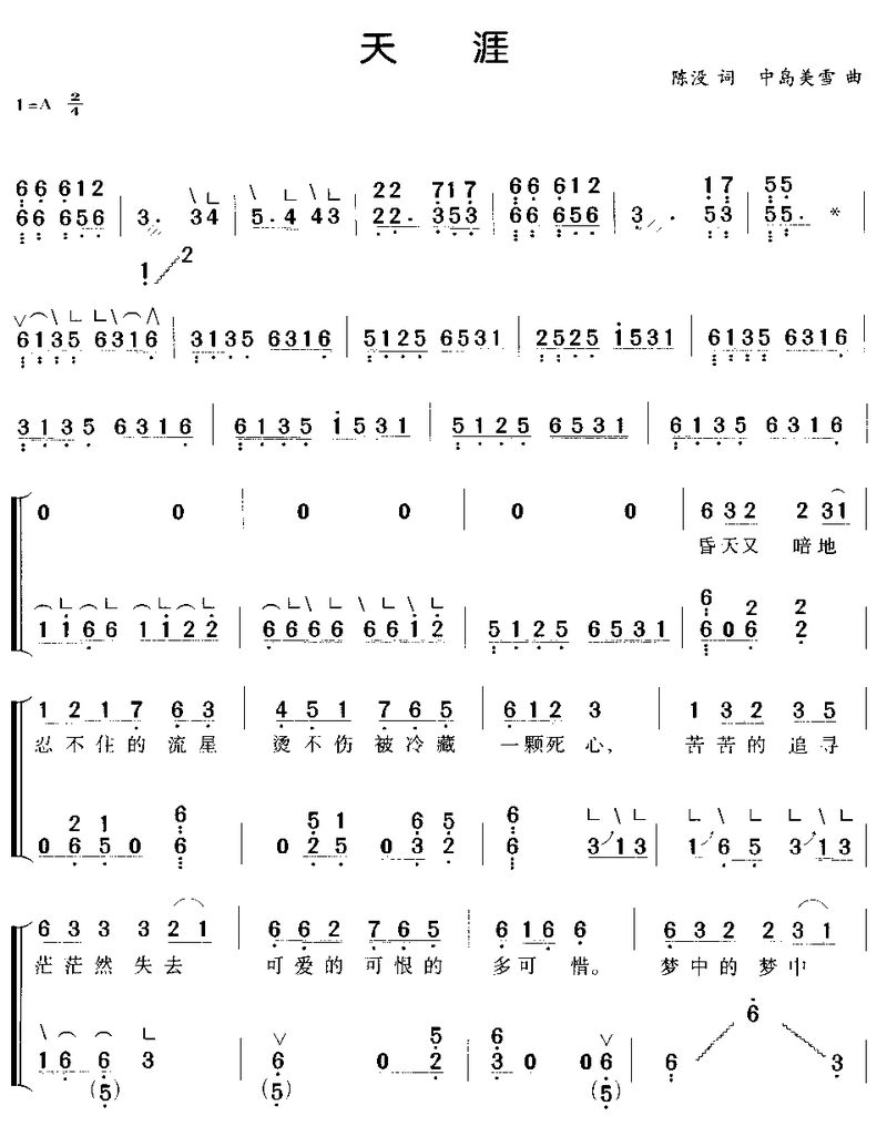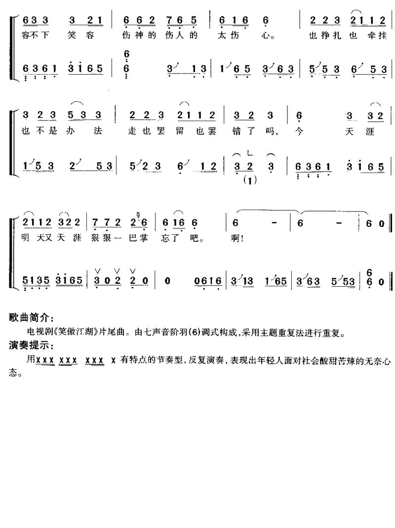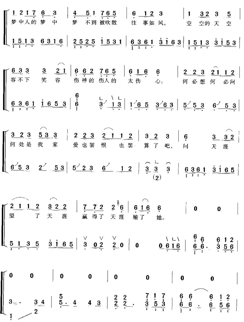 >> 天涯-《笑傲江湖》片尾曲(古筝伴奏谱_简谱)