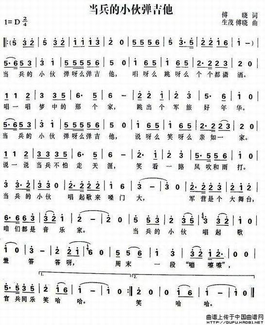 >> 当兵的小伙弹吉他-军歌(简谱)