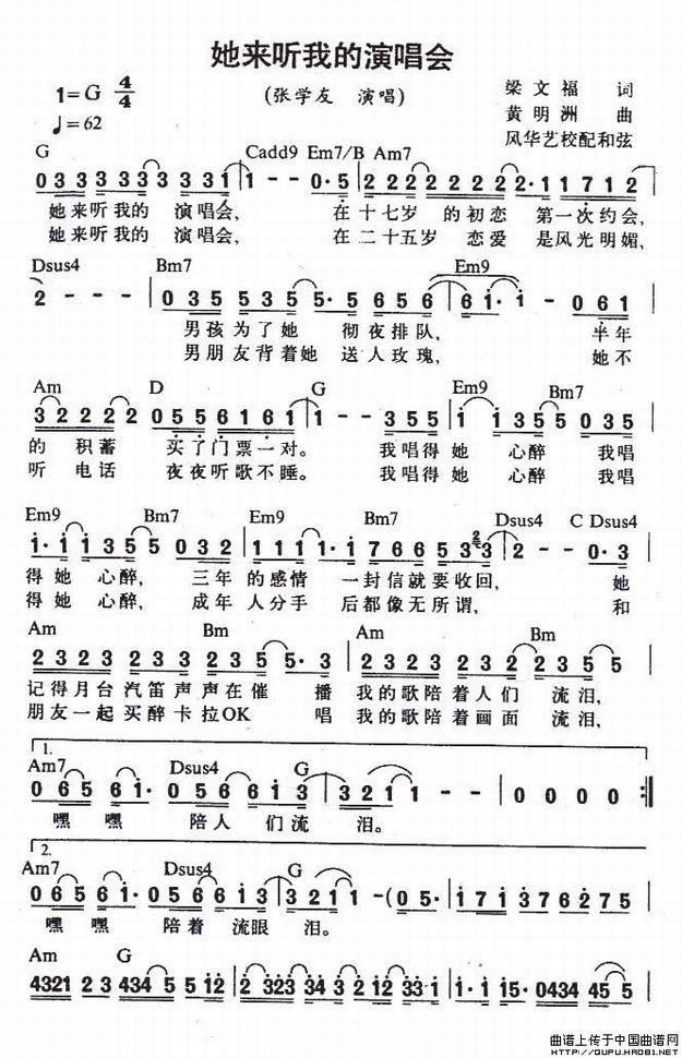 >> 她来听我的演唱会-张学友(简谱+和弦)