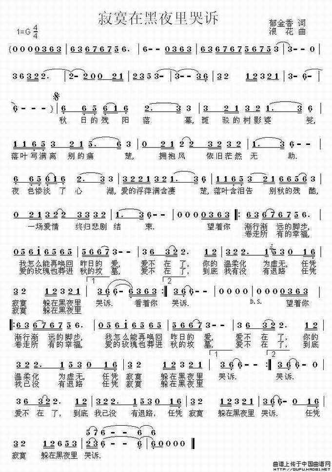 >> 寂寞在黑夜里哭诉-踏歌(简谱)