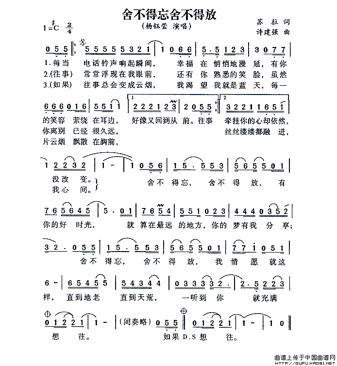 >> 舍不得忘舍不得放-杨钰莹(简谱)