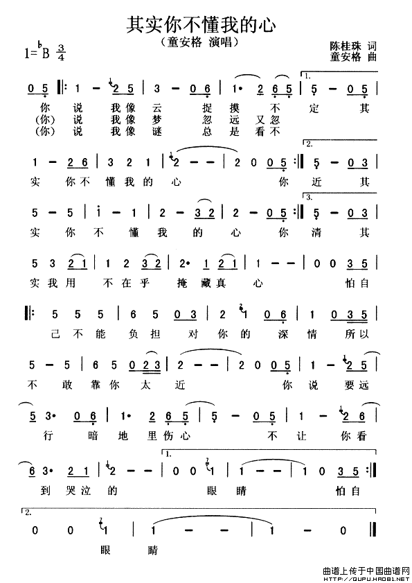 其实你不懂我的心-童安格(吉他谱_六线谱)