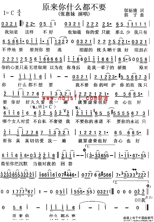 >> 原来你什么都不要-张惠妹(简谱)