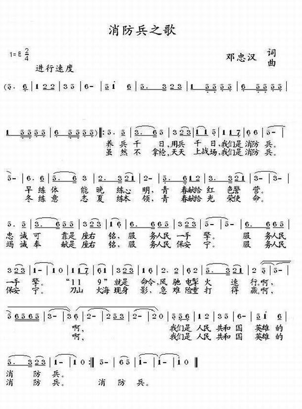 >> 消防兵之歌-军营创作歌曲(简谱)