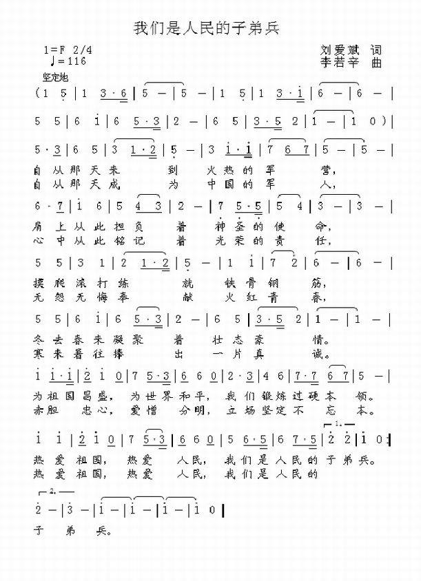 >> 我们是人民的子弟兵-军营创作歌曲(简谱)
