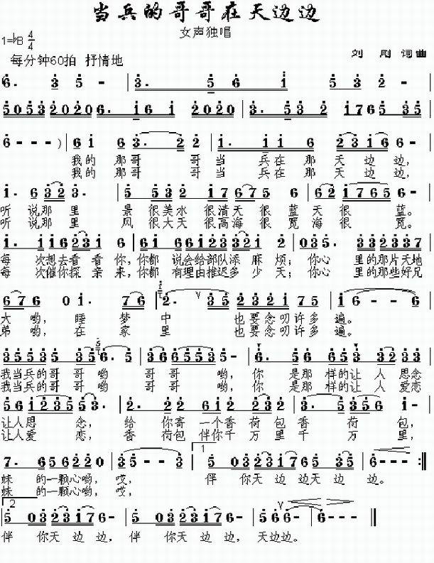 >> 当兵的哥哥在天边边-军营创作歌曲(简谱)