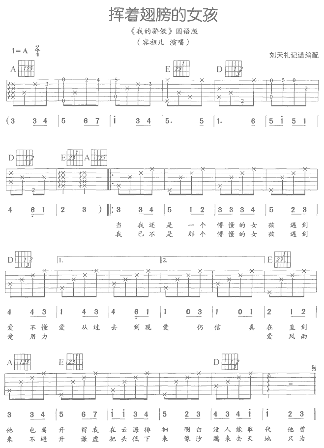 >> 挥着翅膀的女孩-容祖儿(吉他谱_版本2)