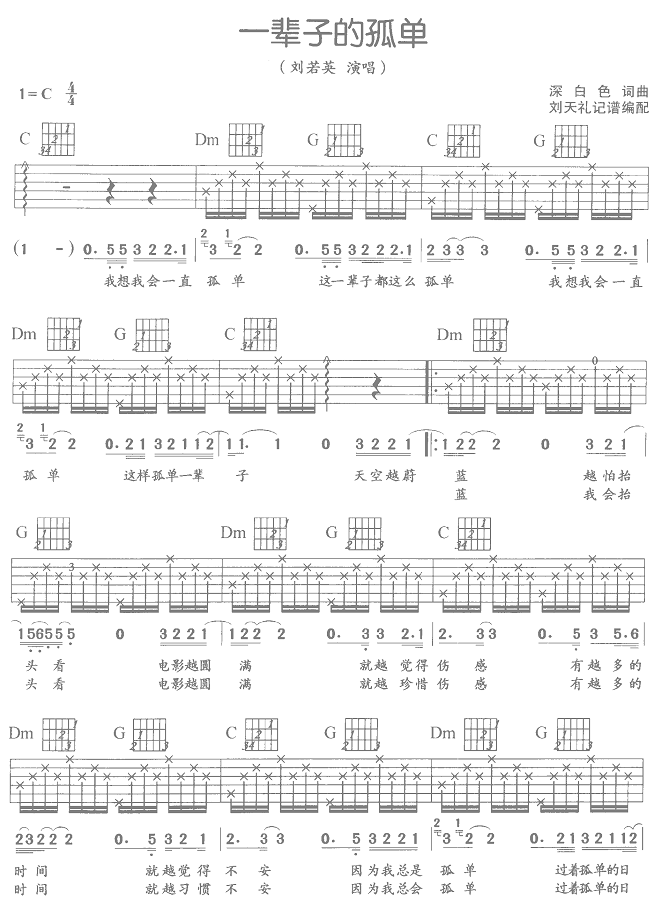 >> 一辈子的孤单-刘若英(吉他谱_版本2)