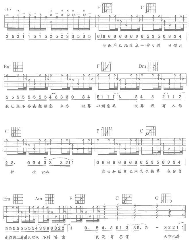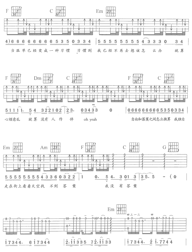 一辈子的孤单-刘若英(吉他谱_版本2)