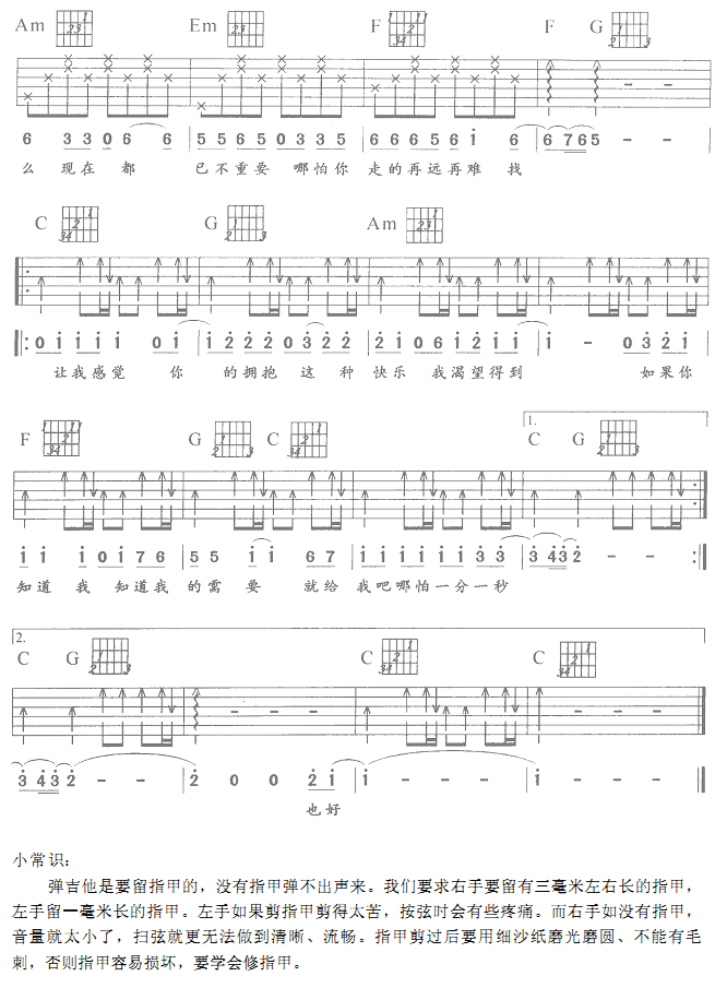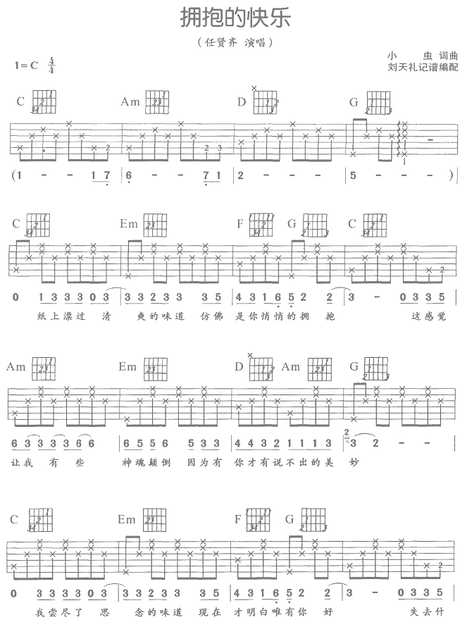 拥抱的快乐-任贤齐(吉他谱_六线谱)