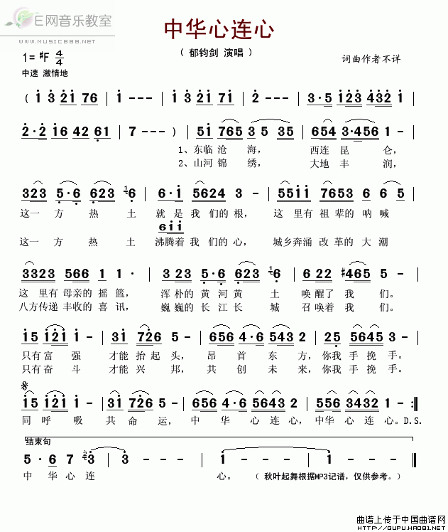 >> 中华心连心-郁钧剑(简谱)