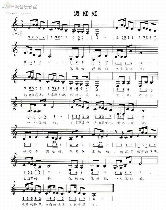 >> 泥娃娃-少儿歌曲(简谱+线谱)