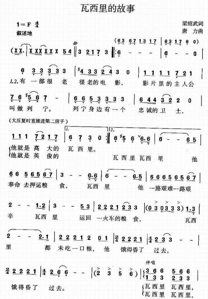 >> 瓦西里的故事-梁绍武词 唐力曲(简谱)