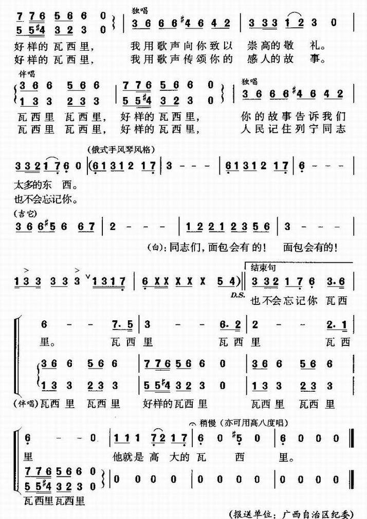 瓦西里的故事-梁绍武词 唐力曲(简谱)