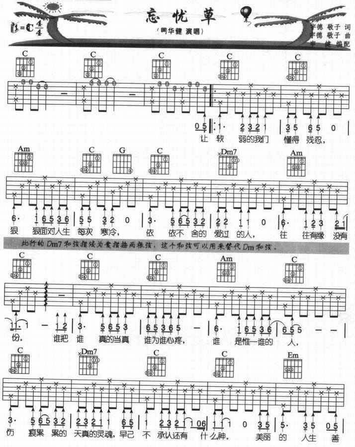 >> 忘忧草-周华键(吉他谱_六线谱)