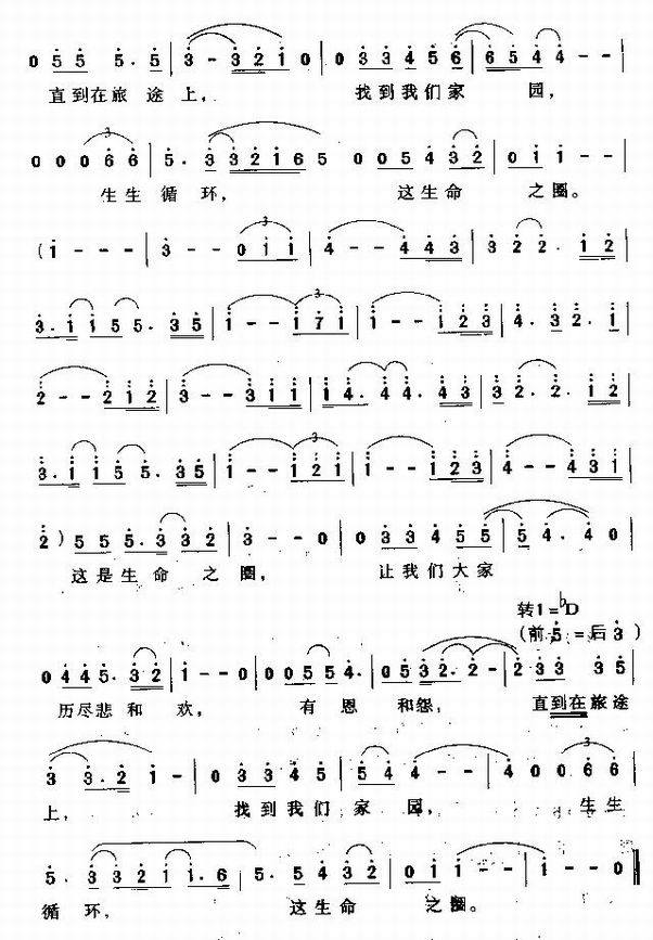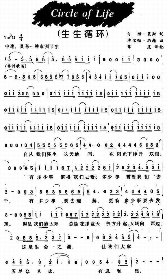 生生循环-电影《狮子王》插曲(简谱)