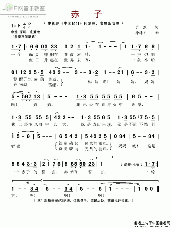 电视剧《中国1921》片尾曲之二———《赤子》