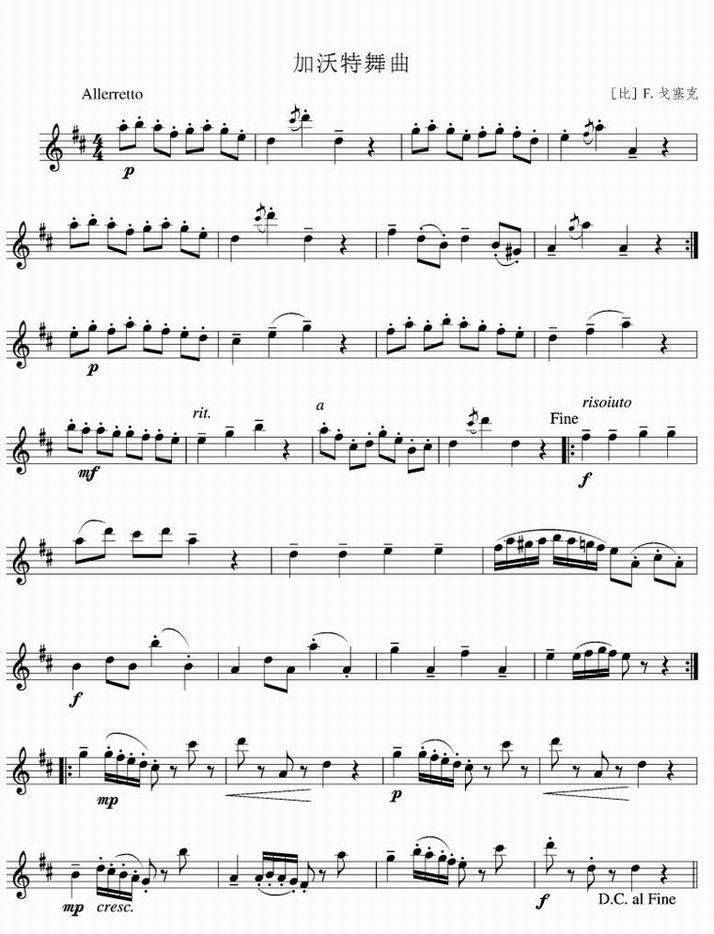>> 加沃特舞曲-戈塞克(长笛曲谱_线谱)