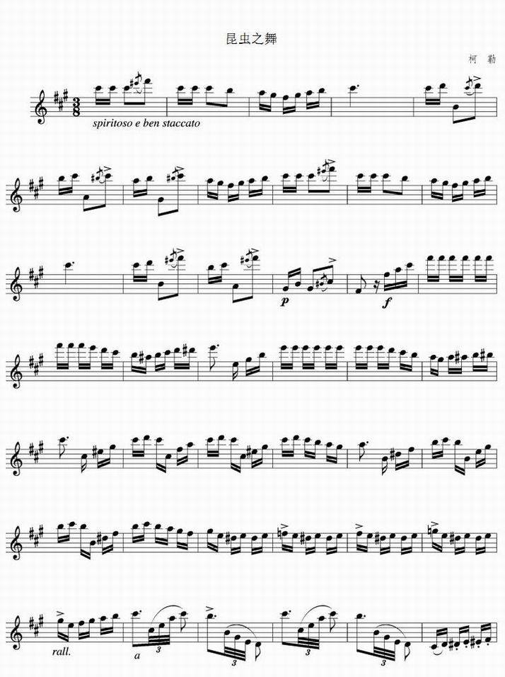 >> 昆虫之舞-柯勒(长笛曲谱_线谱)