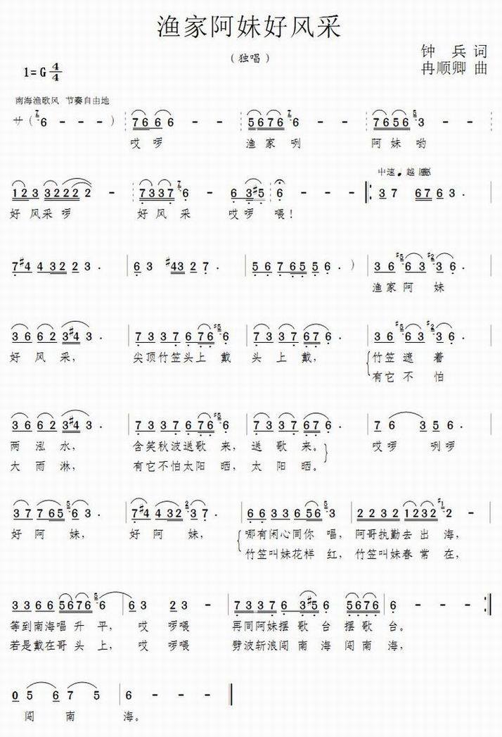 >> 渔家阿妹好风采-钟兵词 冉顺卿曲(简谱)