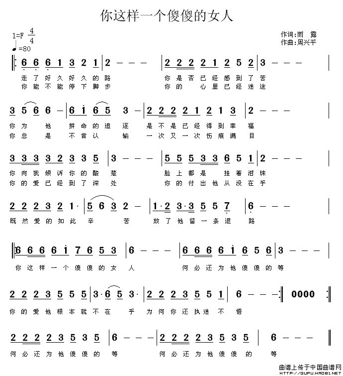 >> 你这样一个傻傻的女人-原创歌曲(简谱)