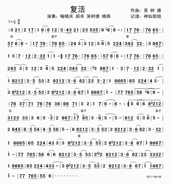 >> 复活-吴树德曲(纯音乐旋律简谱)