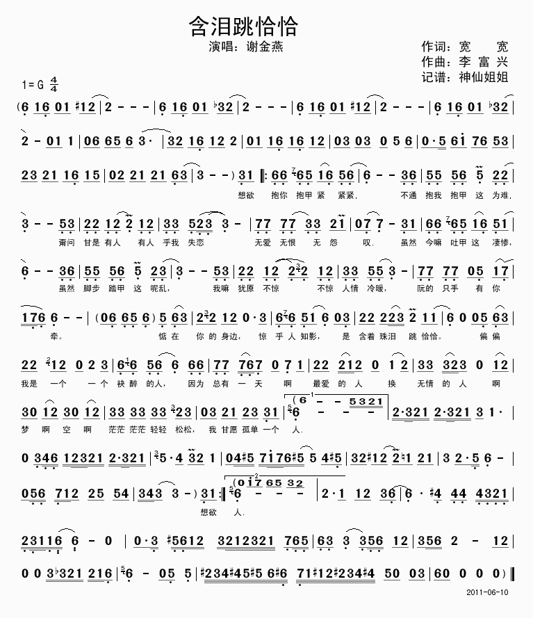 >> 含泪跳恰恰-谢金燕(闽南语歌曲_简谱)