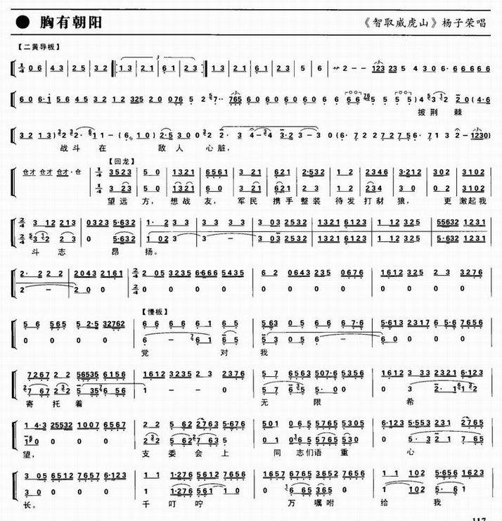 >> 胸有朝阳-《智取威虎山》杨子荣唱段(京剧琴谱_简谱)