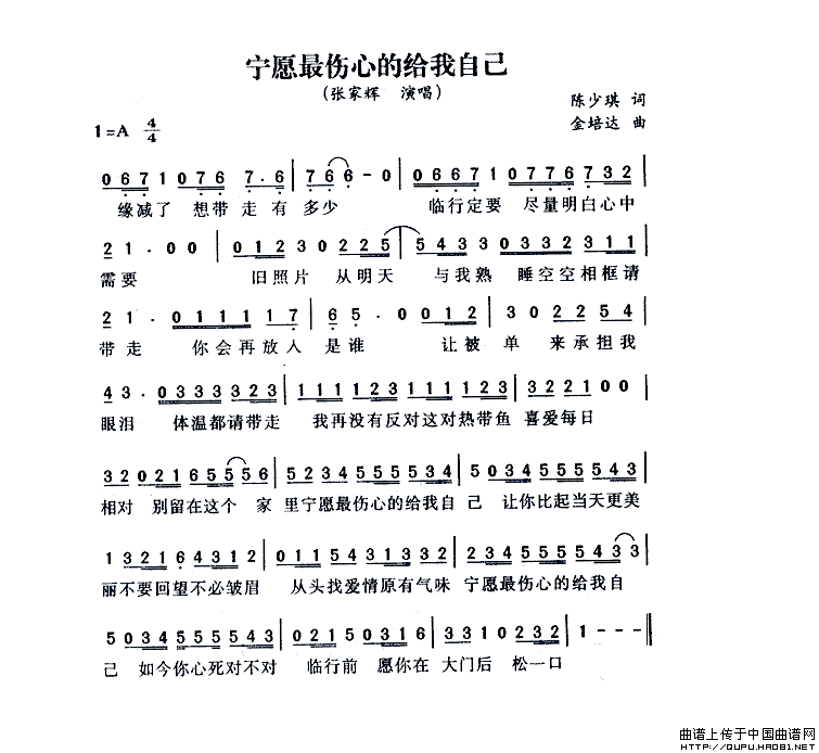>> 宁愿最伤心的给我自己-张家辉(简谱)