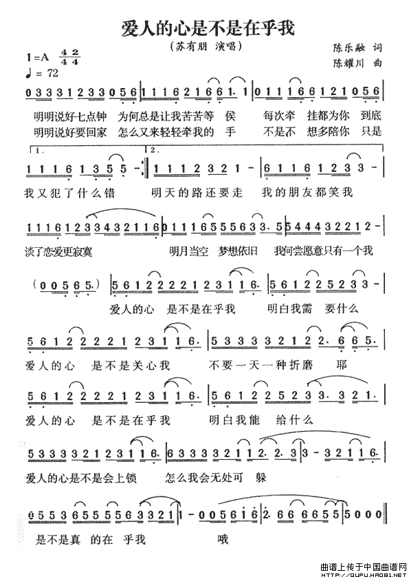 >> 爱人的心是不是在乎我-苏有朋(简谱)