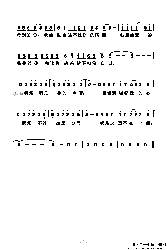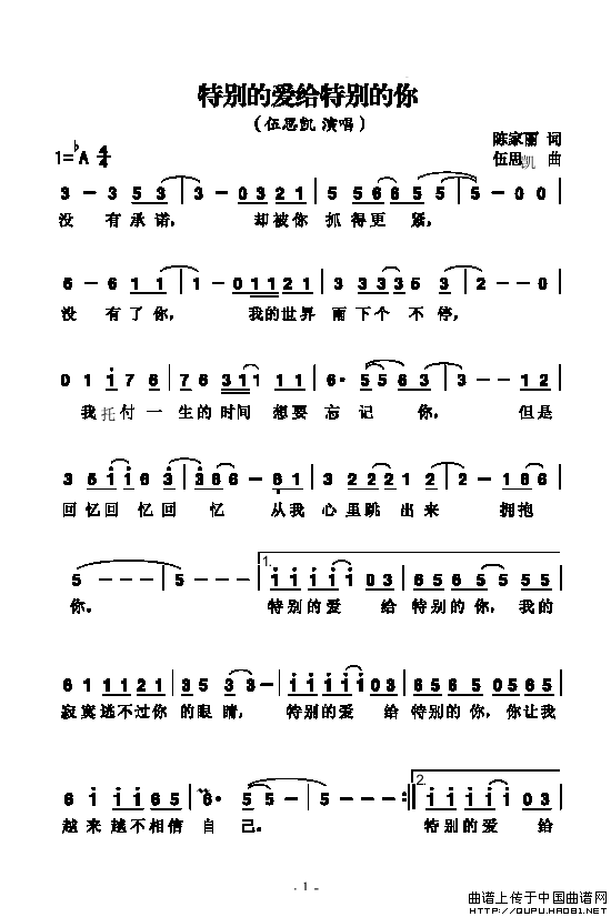 >> 特别的爱给特别的你-伍思凯(简谱)