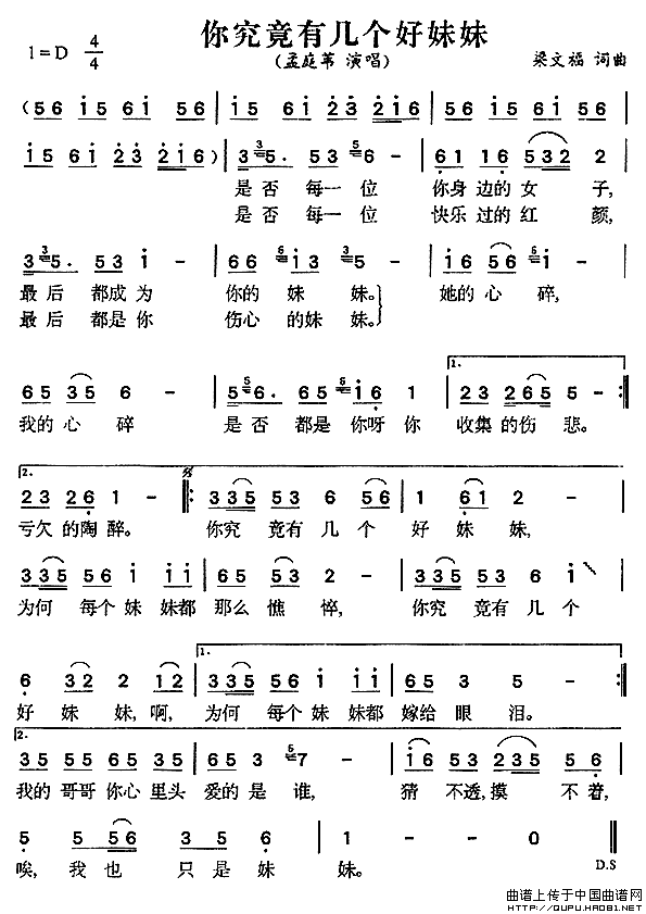 >> 你究竟有几个好妹妹-孟庭苇(简谱)