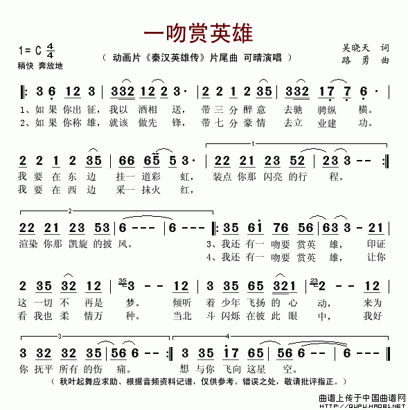 作词:吴晓天 作曲:路勇 演唱:可晴