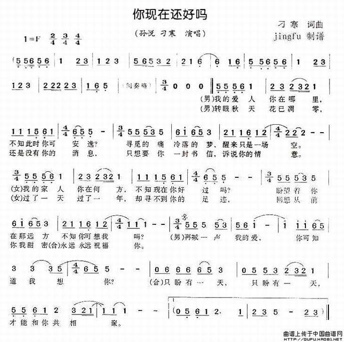 >> 你现在还好吗-孙悦 刁寒(简谱)