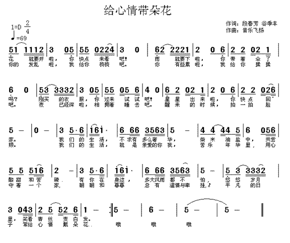 >> 给心情带朵花-原创歌曲(简谱)