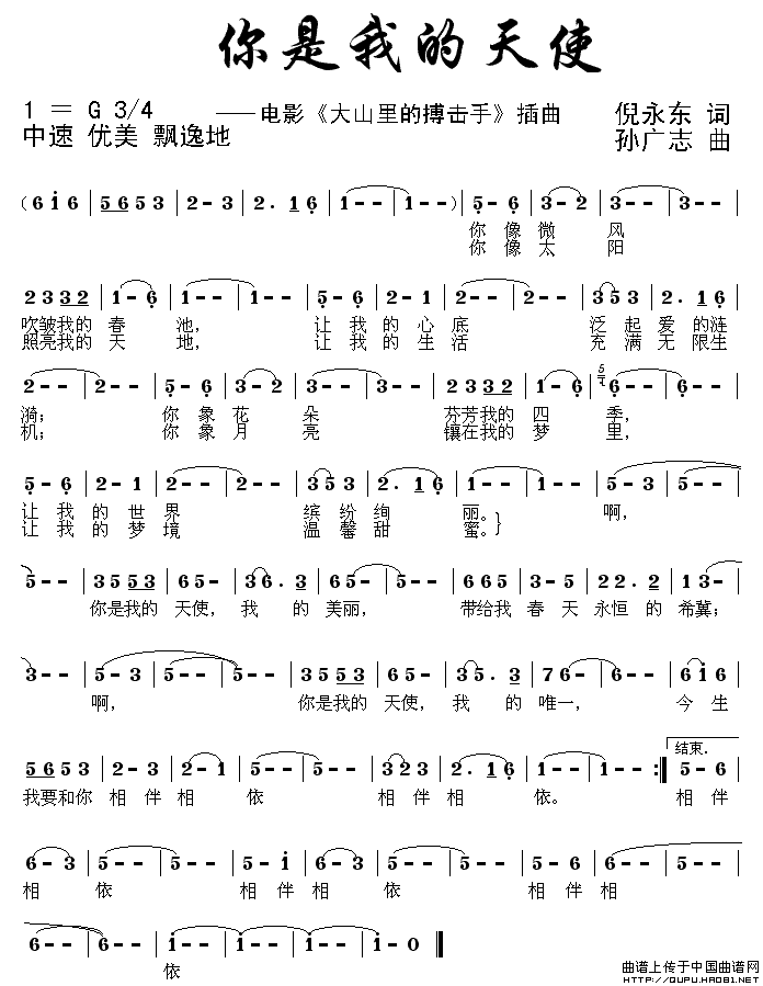 >> 你是我的天使-《大山里的搏击手》插曲(简谱)
