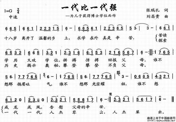 >> 一代比一代强-原创歌曲(简谱)