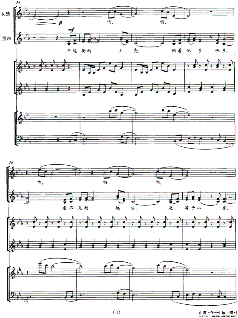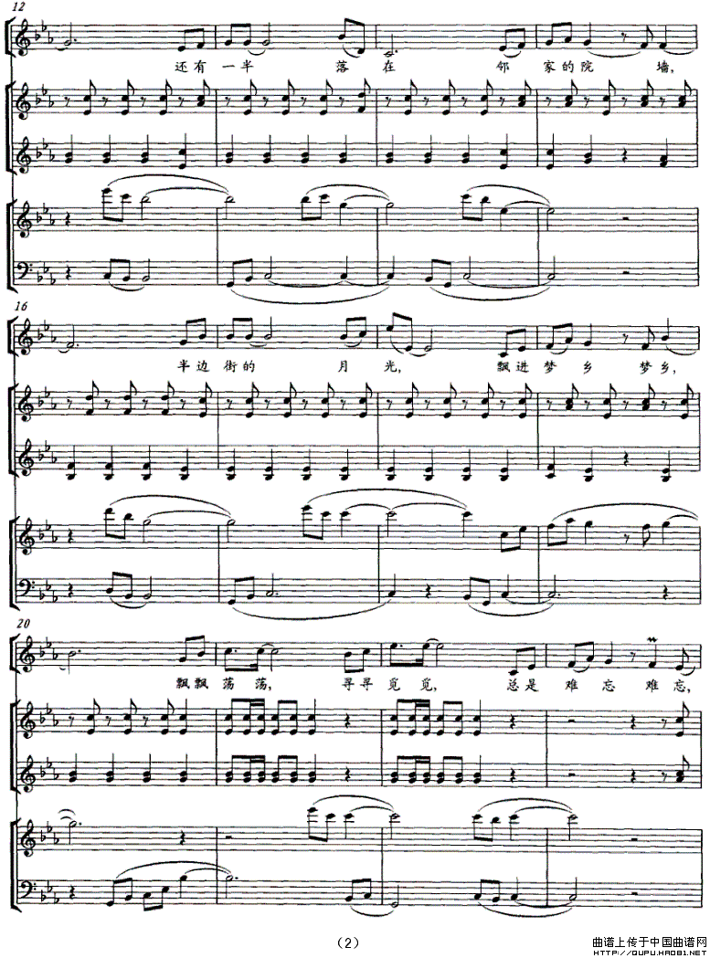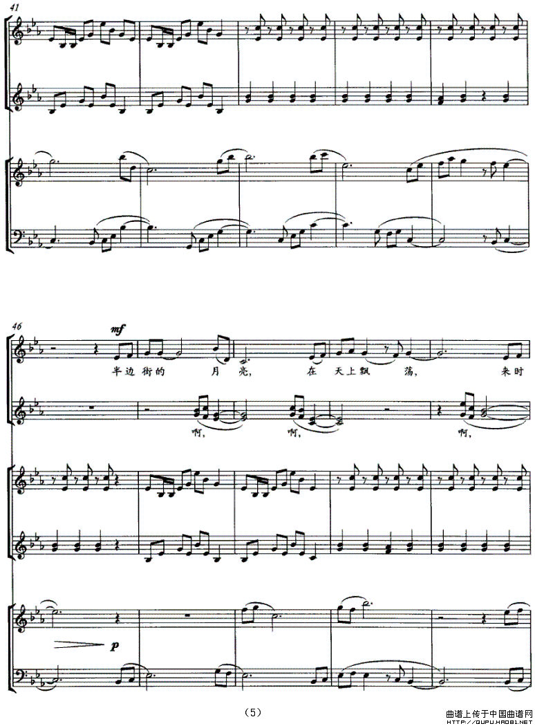 >> 半边街的月亮-柳笛词 黄新华曲(钢琴、小提琴伴奏谱_线谱)