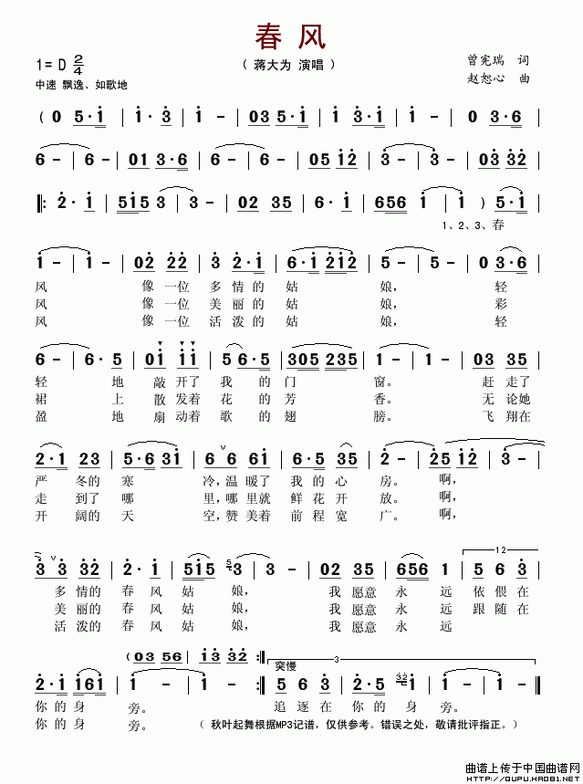 作词:曾宪瑞 作曲:赵恕心 演唱:蒋大为
