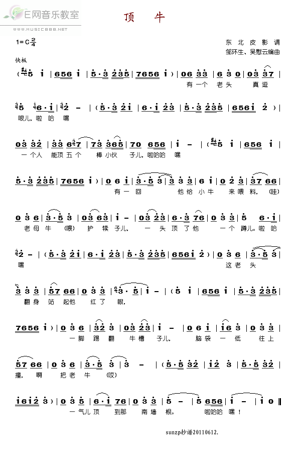 >> 顶牛-郭颂(东北皮影调_简谱)